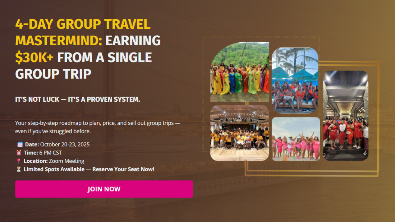 “Imagine Earning $30K+ From a Single Group Trip” — 4-Day Live Mastermind